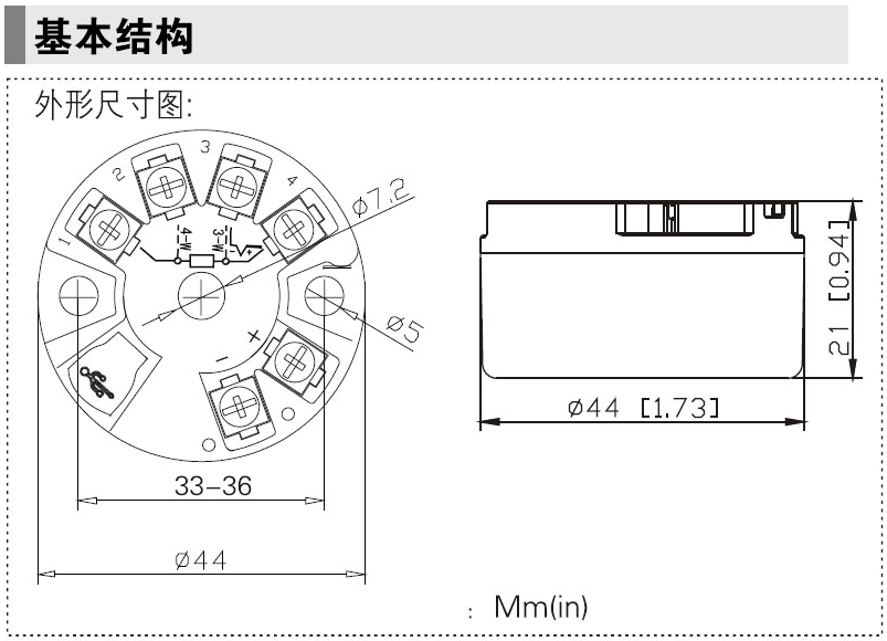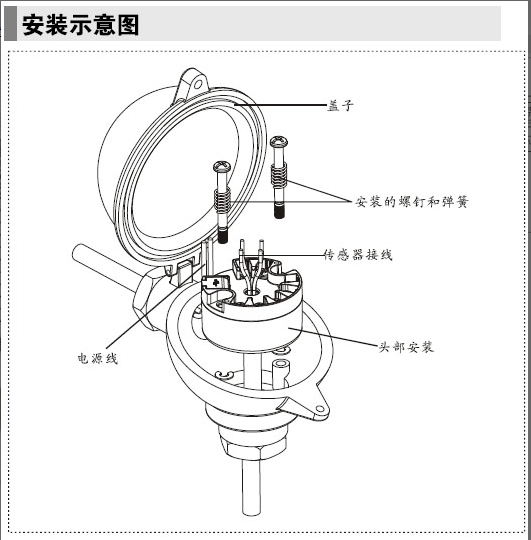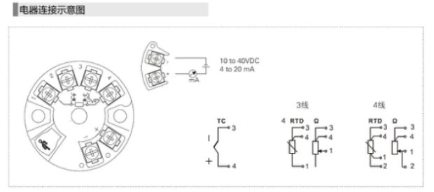 頭部安裝式智能溫度變送器,用于熱電阻(RTD)、熱電偶(TC)、電阻(Ω)、電壓(mV)信號(hào)輸入,二線制4~20mA模擬輸出,安裝于傳感器內(nèi)部(Form B)。